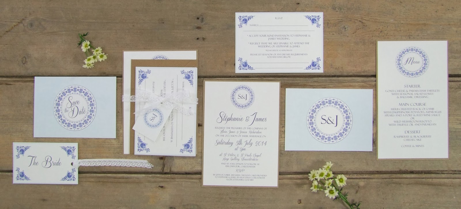 The range is printed onto a gorgeous textured 320gsm card and comes with a full set of co-ordinating items including table plans and order of service. Make sure you check back later to see the wedding moodboard I have created to go with the new China Blue range.